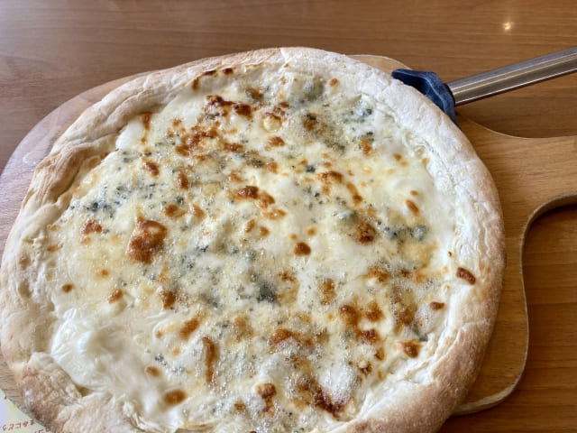 クワトロフォルマッジはモッツァレラ、ゴルゴンゾーラ、パルミジャーノなど複数のチーズを使う濃厚なピザです。